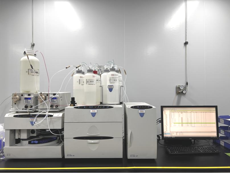 本試驗(yàn)采用離子色譜法(IC) 對(duì)純化水樣品中的無(wú)機(jī)陰、陽(yáng)離子、及部分有機(jī)弱酸進(jìn)行定性和定量分析。該方法基于離子交換分離原理,結(jié)合電導(dǎo)檢測(cè)器,具有高靈敏度、高選擇性及多離子同時(shí)檢測(cè)的優(yōu)勢(shì),適用于超純水中痕量離子雜質(zhì)的精準(zhǔn)測(cè)定。